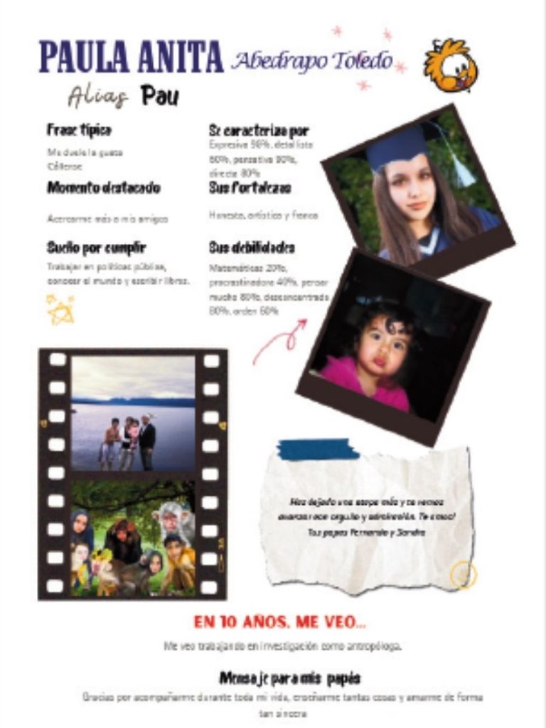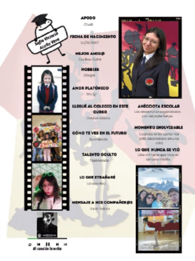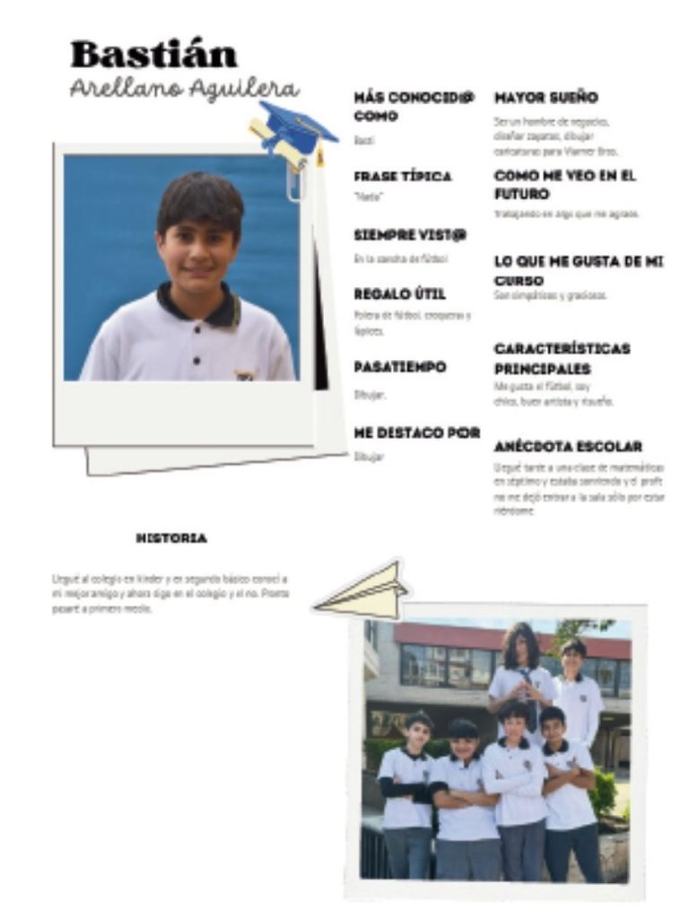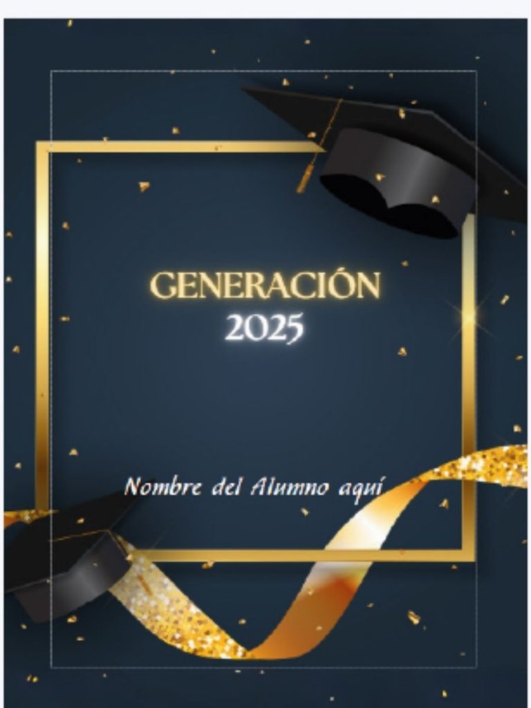 La portada es lo primero que verá tu generación. Puede incluir el año de graduación, el nombre del colegio o un concepto visual que represente al curso.