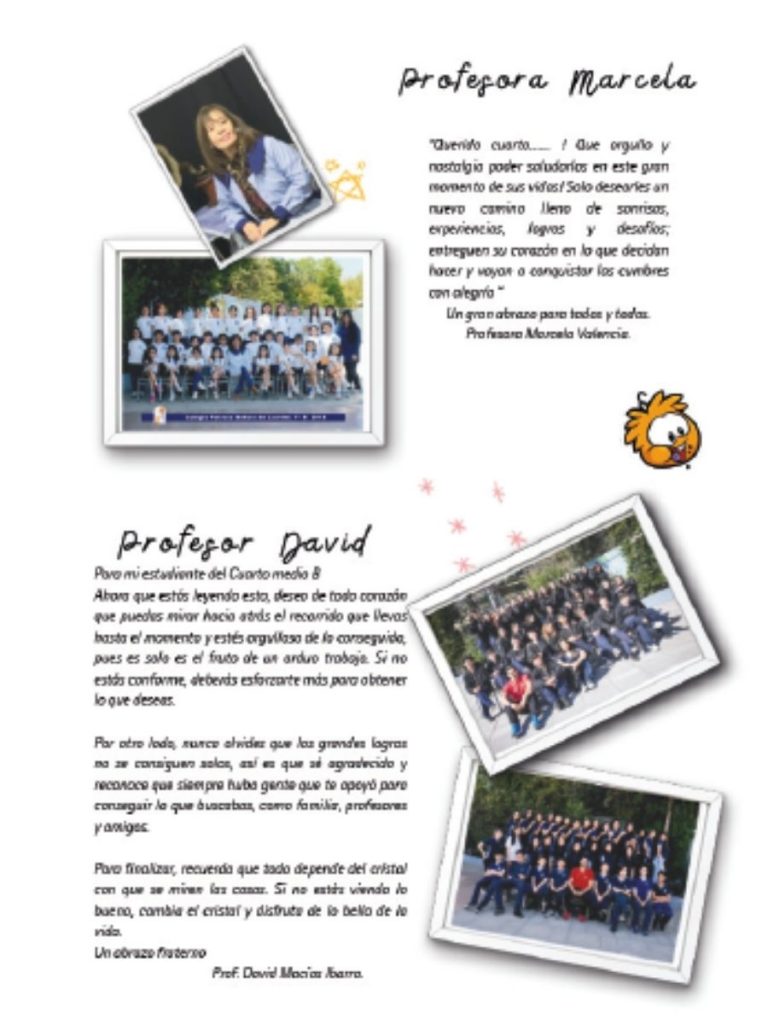 Muchos cursos incluyen una página para agradecer a los profesores que los acompañaron durante su etapa escolar.
